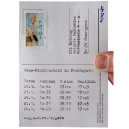 The ascent took four sol. Sol is a Martian day with a length of 24.39 hours. Four sol are 99 hours. The action took place in Stuttgart in the cellar of the Kerneweine Gallery, Stuttgart.