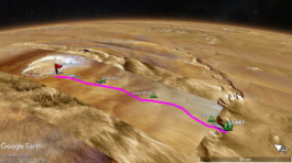 The goal of the performance was the first ascent of Olympus Mons, the largest volcano and mountain in the solar system, located on Mars.